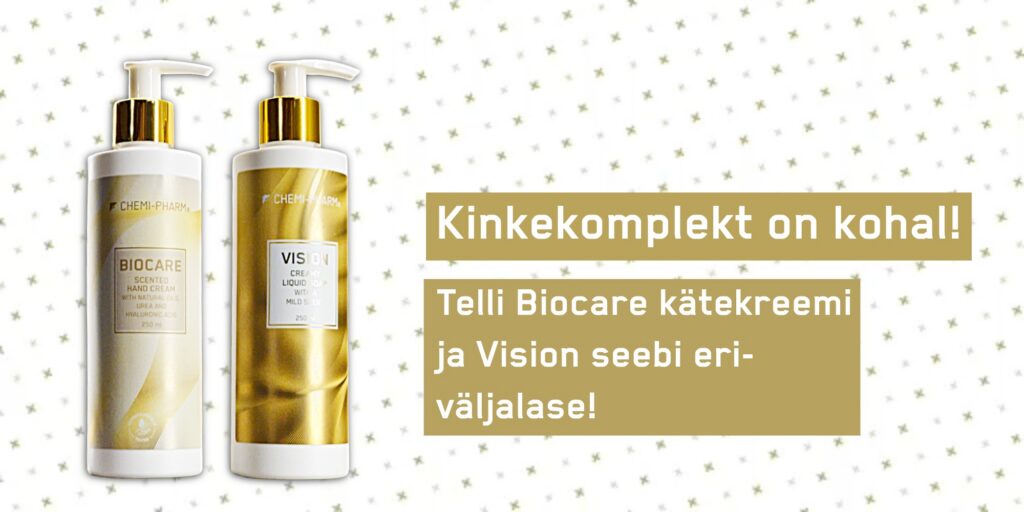 - Kätekreem Biocare – Täiuslik koostis hüaluroonhappe ja uureaga, mis toidab ja kaitseb, imendudes kiiresti ja jättes käed pehmeks sellel külmal perioodil.