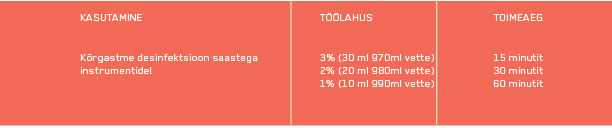 Eemaldab meditsiinilistelt instrumentidelt vere, valgud, sekreedid ja rasvad. Loputamisel eemaldub materjalidelt kiiresti ja täielikult.