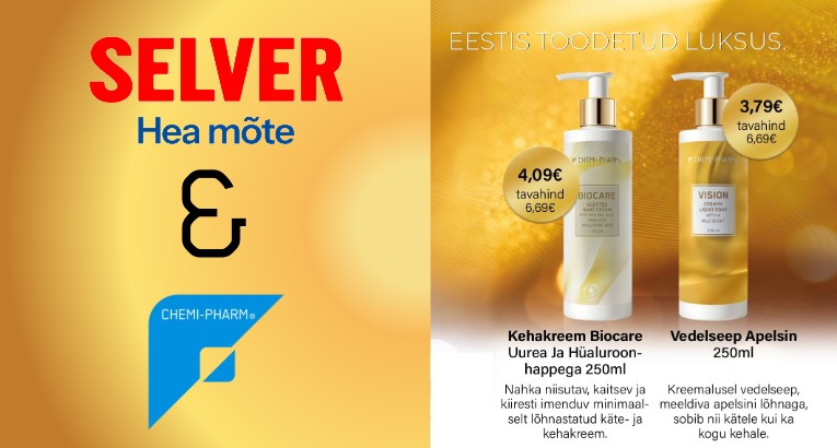 Eesti juhtiva desinfektsioonivahendite ja nahahooldustoodete tootja Chemi-Pharmi sortiment on laienenud Selveri jaekettidesse üle Eesti, pakkudes tarbijatele eksklusiivset ligipääsu seni vaid haiglates ja meditsiiniasutustes kasutatud kõrgkvaliteetsetele toodetele.
